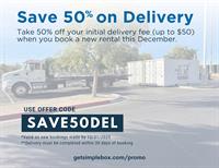 Book a new container rental and receive 50% off your initial delivery fee (up to $50 off).